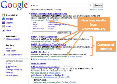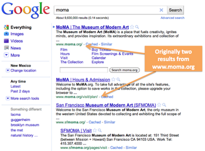 ] (现代艺术博物馆)可能会触发来自官方网站的两种搜索结果: