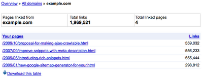 当重新指向一个特定的URL时,指向您网站的链接就会显示出来。如果有一个指向您网站的链接,它能链接到URL1然后重新链接到URL2,我们将显示该从URL1到URL2的链接为中间链接。此外,我们在“指向您网站的链接”功能中的所有表格里添加了一个“下载所有链接”选项。