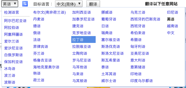 南 非语,阿尔巴尼亚语,阿拉伯语,亚美尼亚语,巴斯克语,白俄罗斯语,保加利亚语,加泰罗尼亚语,克罗地亚语,捷克语,丹麦语,荷兰语,爱沙尼亚语,菲律宾 语,芬兰语,法语,加利西亚语,格鲁吉亚,德语,希腊语,海地克里奥尔语,希伯来文,印地文,匈牙利,冰岛,印度尼西亚语,爱尔兰语,意大利语,韩语,拉 脱维亚文,立陶宛语,马其顿语,马来语,马耳他语,挪威语,波斯语,波兰语,葡萄牙语,罗马尼亚语,俄语,塞尔维亚语,斯洛伐克语,斯洛文尼亚语,西班牙 语,斯瓦希里语,瑞典语,泰语,土耳其语,乌克兰语,乌尔都语,越南语,威尔士语,和意第绪语。