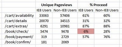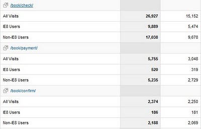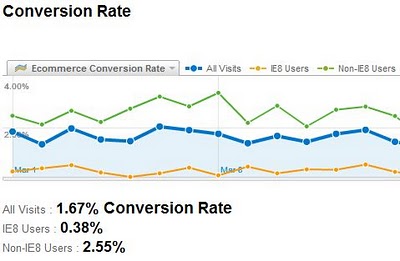 注意营收的提升幅度!:-)每个人都希望能提高营收。眼尖的人会发现,这并不是该网站的总营收,而只针对IE8用户。这其中发生了什么状况呢?
