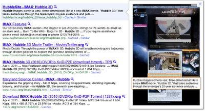 ,用户可以在点击搜索结果之前就能看到其快照。自该功能于去年十一月推出之后,我们已经做了大量改进,如果您是网站站长,那么现在对您来说最为有用的一点就是即时预览已经可以支持Flash显示。