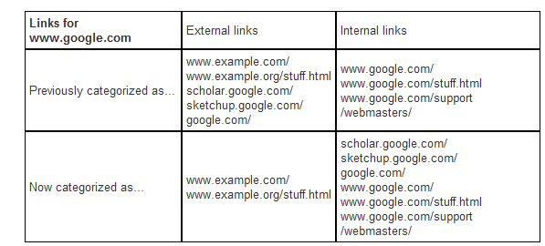 如今,大多数人都认为 example.com 和 www.example.com 是同一个网站,所以我们也相应作出了改变,现在,不管您添加 example.com还是 www.exmple.com 作为一个网站,来自www和非www版本域名的链接都将被归类为内部链接。我们还扩充了这个想法的范畴,纳入了其他的子域名,因为很多拥有某域名的人同时也拥有其子域名 —— 所以来自 cats.example.com 或 pets.example.com 的链接也将被归类为www.example.com 的内部链接。