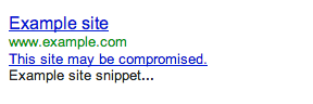 为提高用户体验,我们必须确保搜索结果中显示链接的安全性。不幸的是,怀有恶意的第三方黑客很可能利用网站管理员,攻击他们的网站,操纵搜索结果或传播恶意内容及垃圾网站。我们会在搜索结果中对经检测已遭到攻击的网站进行标注“此网站安全性可能存在问题”,藉此对用户和网站管理员发出警告: