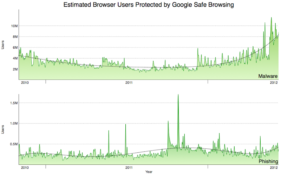 即使在这种不断升级的“军备竞赛”中,我们的工作还是取得了良好效果。我们用来测试工作成功与否的一个方法是,要求人工评估者来判断我们的表现。这些评估者会对在Google投放广告的一批网站进行审查。我们覆盖了大量的网站样本,以便获得关于此次工作的准确统计结果。另外,我们还会根据某个特定网站的展示次数,在统计样本中对网站进行权重衡量。如果某个网站展示得比较频繁,那么它很可能被纳入我们的样本集。通过进行人工评估,我们能够调整我们的自动化系统,并确保不断提升我们的工作成果。2011年,不良广告相比2010年减少50%以上。也就是说,在短短的一年内,Google网站上展示的不良广告比例减少了一半。