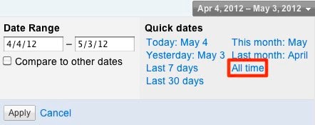 现在,在选择报告的日期范围时,多了一个‘全部时间’选项,您可以查看自第一次展示以来的所有收益、展示次数和点击次数的报告。如果您使用过以前的AdSense界面,或许会记得这一功能——当前的AdSense界面,也添加了这个功能。