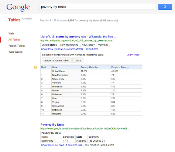 网络将结构性数据用表格的形式呈现给用户。整理这些信息并帮助用户找到最有用的表格,是Google