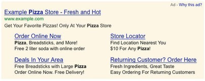 早期测试表明,增强型网站链接可以使出现在有机搜索结果上方的广告的更有效。而且,与普通的2行和3行网站链接相比,它们可能会给广告商带来更高的点击率。
