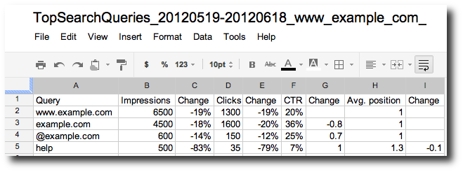 Download to Google Spreadsheet from Webmaster Tools
