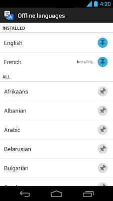 今天,我们发布了Google翻译Android版应用的离线语言包,支持50种语言,包括法语、西班牙语、中文、阿拉伯语等等。