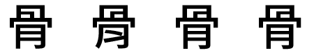 从左到右:骨字在简体中文、繁体中文、日文和韩文中的字形