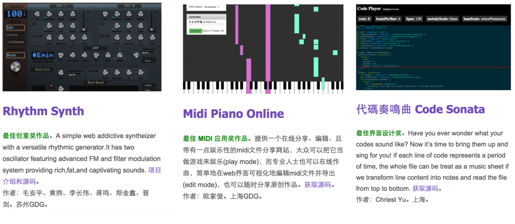 的最新发展,进行新产品的开发,为音乐业界带来更多的创新和商机。竞赛的目标是通过中国开发者们所开发的应用,向中国乐器制造商们呈现利用这些新技术进行创新的机会和潜力,激励乐器制造商们把更多的基于互联网的服务,作为他们乐器产品开发的一部分,并通过这些应用为他们的用户提供更好的产品功能和使用经历,帮助他们拓展更多商机,为乐器销售带来更多的盈利机会。