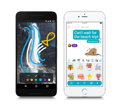 沟通并不仅限于文字,Google Allo为用户提供了一个丰富的自我表达环境。用户可以通过简单的拖动“发送”按钮向上或向下,来控制表情图案和文字的大小。在发送信息之前,用户可以按照自己的想法对图片进行调整。除此之外,Google Allo还与世界级的艺术家和工作室进行了合作,设计了25款的定制表情包,有时候一个表情就道尽了千言万语。