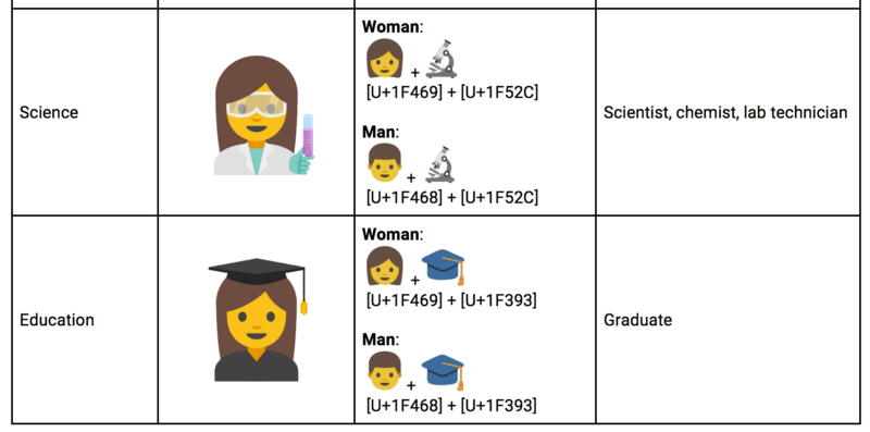 月,我们向统一码联盟提交了推出新职业表情符号的提议。不同于普遍看法的是,统一码联盟并不是什么秘密组织。这是一个由多家科技公司组成的联盟,各家公司的代表会聚在一起讨论如何确保数码文本在平台间的共通性和可操作性。用户之所以能够在电脑上编辑电子邮件,在智能手机上阅读,并将其转发给位于日本的用户,是因为统一码联盟界定了被软件供应商采用的文本渲染规范。