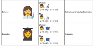 都提到了女性表情符号的范围之窄,且往往都是舞者、新娘和公主之类的形象。